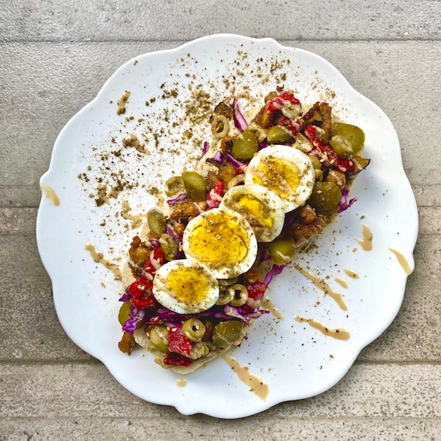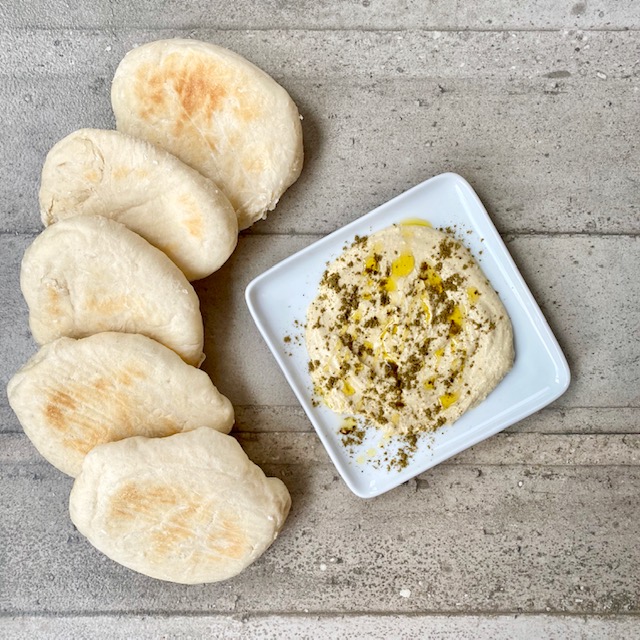 Tonight we enjoyed these pitas fully loaded with – shawarma chicken – Homemade humus – Shawarma eggplant – Pickles, olives, pickled eggplant – Purple cabbage – Hard boiled eggs – Zaatar – Tahini You can add add roasted peppers, beets, slaw, roasted cauliflower or broccoli, babaganoush etc etc