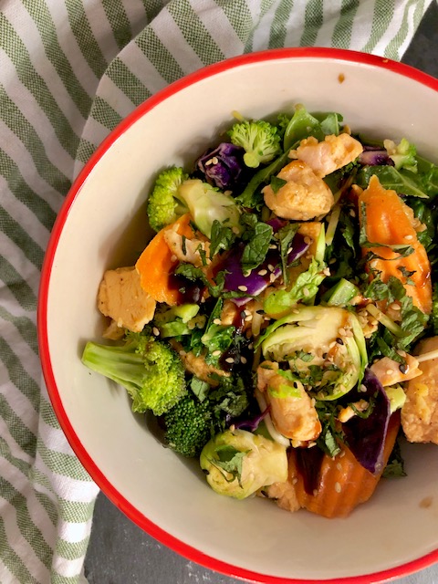 Veggies to stir fry – I bought a prepared bag that had broccoli, purple cabbage, Brussels sprouts, kale and carrots