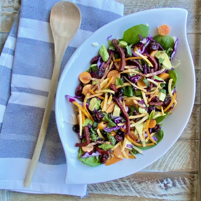 Note: you can prepare salad a bit in advance, but only cut up avocado just prior to serving.
