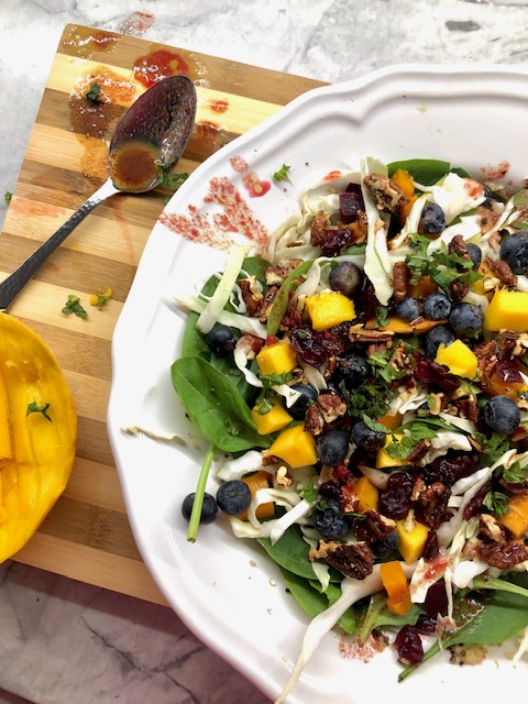 The salad is pictured with goat cheese but is absolutely delicious without it as well. It’s perfect for your Rosh Hashana table! .