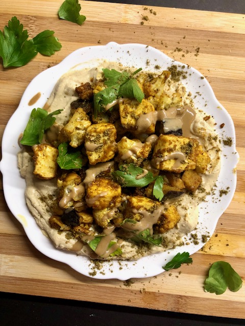 In the meantime, mix together black beans, corn, avocado, jalapeño and tomatoes. Top with lime juice, chili lime seasoning and fresh basil. Set aside.